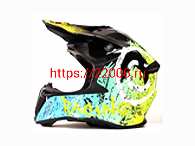 - Мотошлем VIRTUE MD-902 Кросс черный с голубо-салатовым граффити (M) в Алапаевске недорого