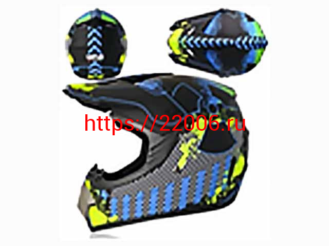 - Мотошлем VIRTUE MD-905 Кросс черный матовый с сине-салатовым рисунком (S) в Алапаевске недорого