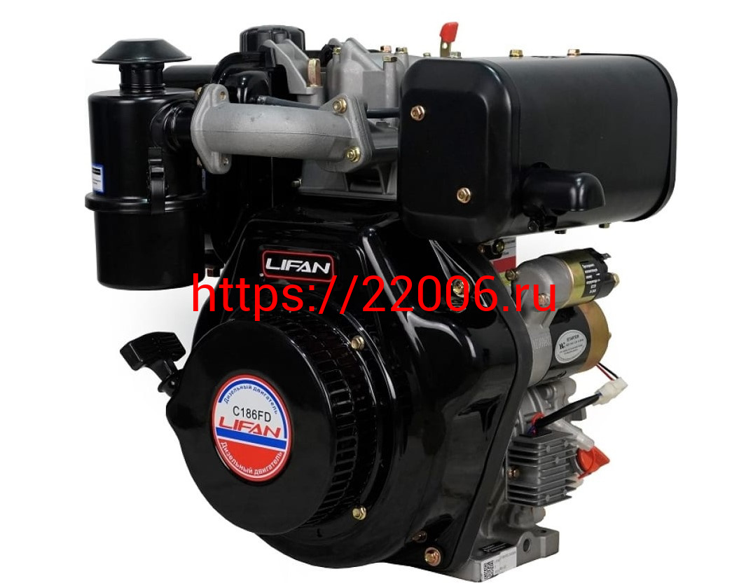 - Двигатель LIFAN 10 л.с. С186FD дизельный (вал d25 мм) руч /эл. старт в Алапаевске недорого