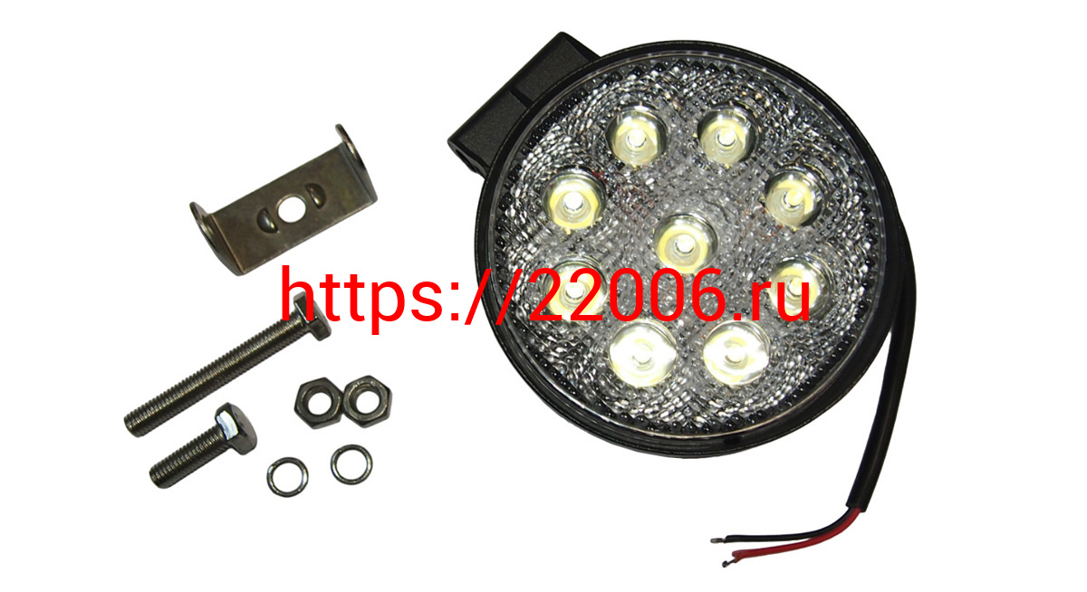 - Фара светодиодная, круглая, c кронштейном, диаметр 11 см, 12V-80V , 9 SMD в Алапаевске недорого