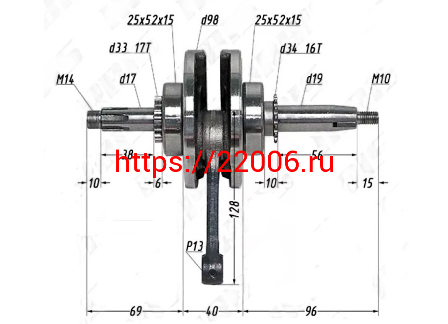 - Коленвал 152FMI,153FMI 125 Шторм125 (палец 13мм, шатун 130мм) DINGO/TTR125 в Алапаевске недорого