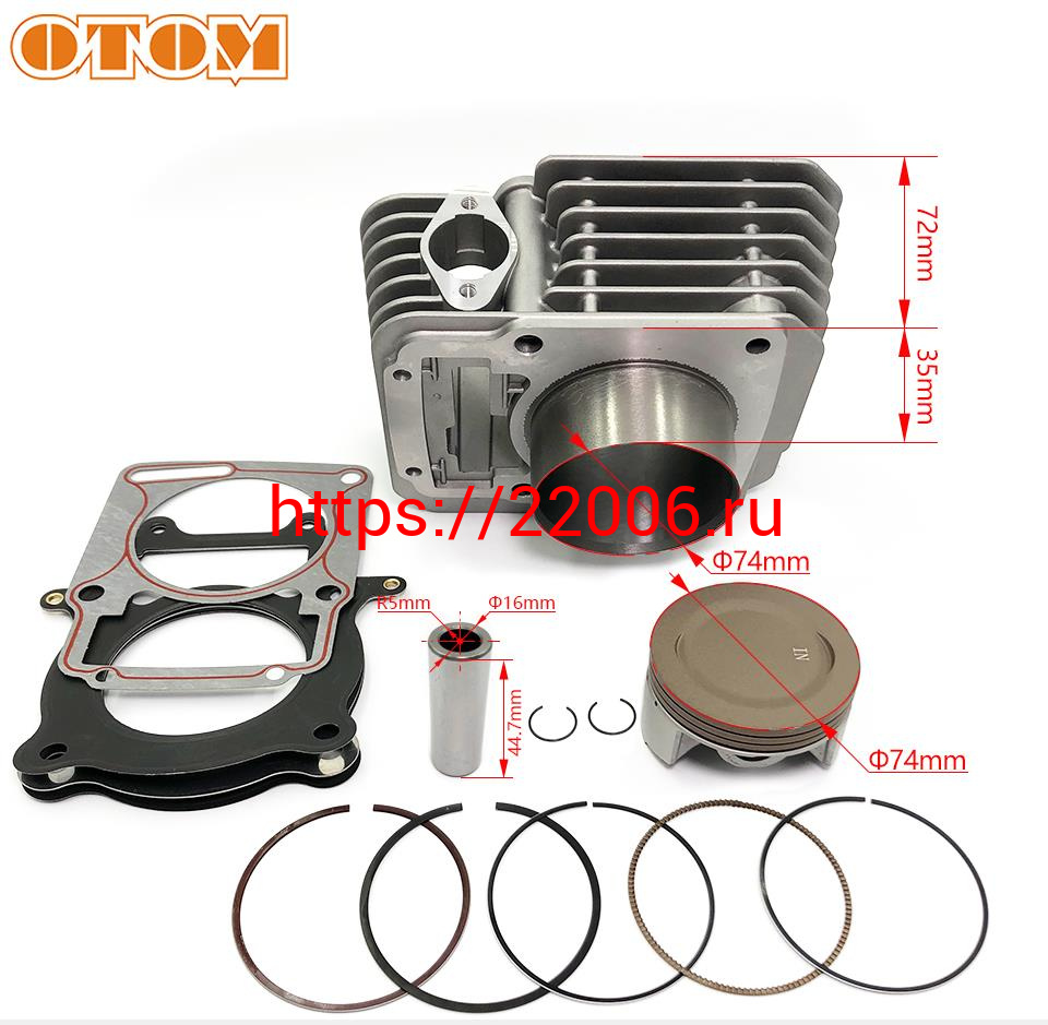 - Цилиндр в сборе с поршнем ZS172FMM-3A, 74мм, тюнинг ZS174FMM (CB250-F) (big bore) OTM в Алапаевске недорого