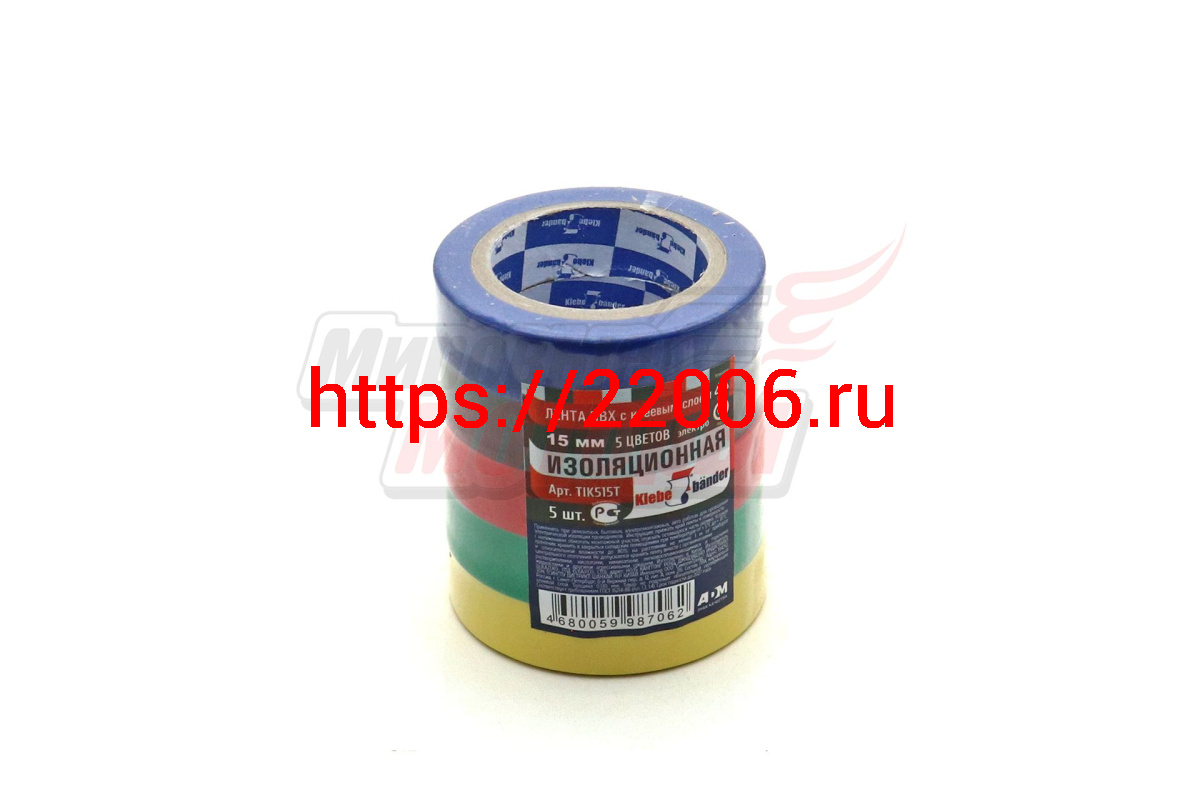 - Изолента ПВХ 15мм х 10м (комплект=5шт, 5цв.) Klebebander 66585-А в Алапаевске недорого