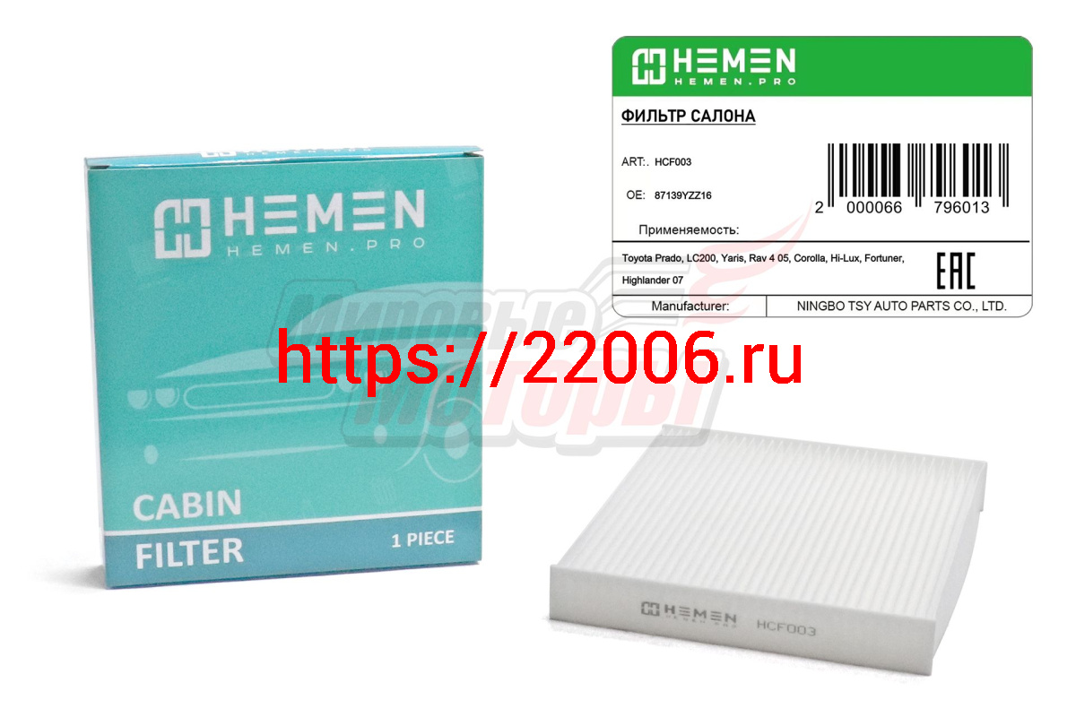- Фильтр салона Toyota Prado, LC200, Yaris, Rav 4 05, Corolla, Hi-Lux, Fortuner, Highlander 07 (HCF003) в Алапаевске недорого