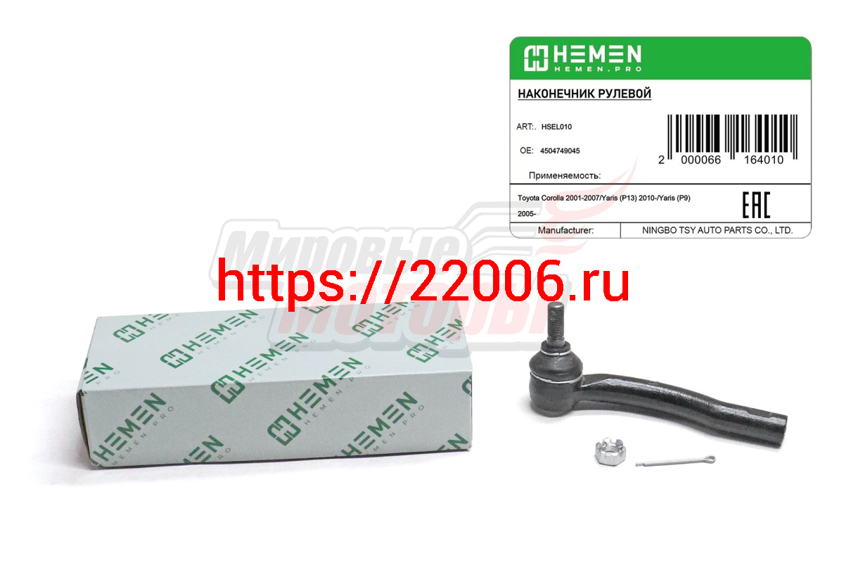 - Наконечник рулевой левый Toyota Corolla 02-, Yaris 05- (HSEL010) в Алапаевске недорого