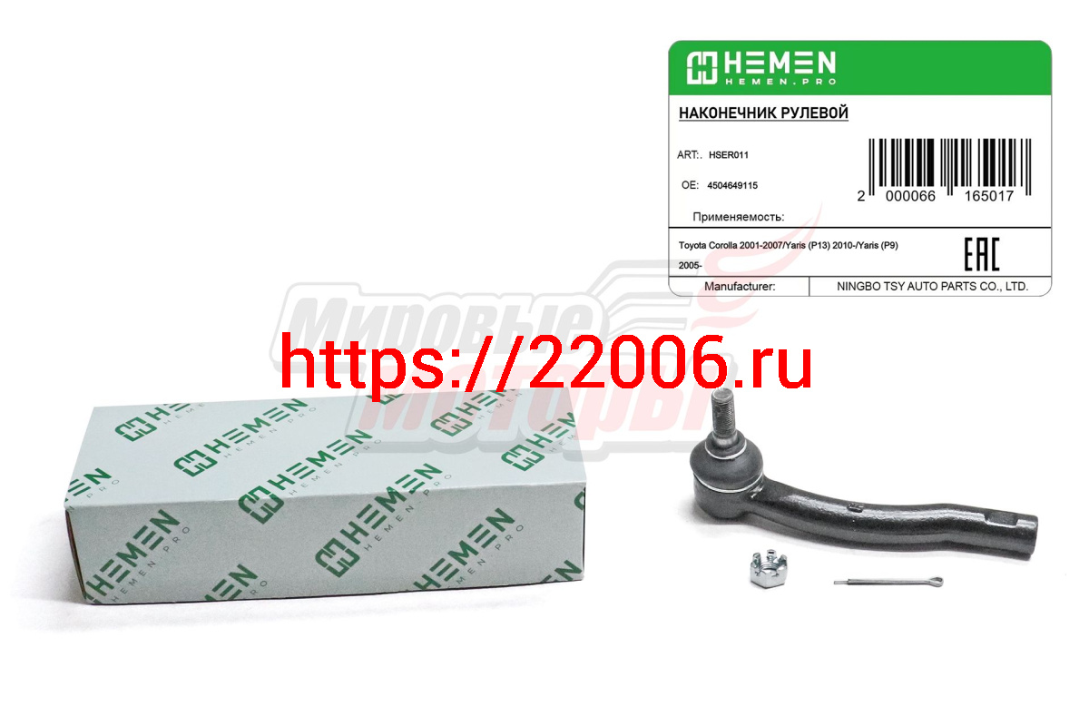- Наконечник рулевой правый Toyota Corolla 02-, Yaris 05- (HSER011) в Алапаевске недорого